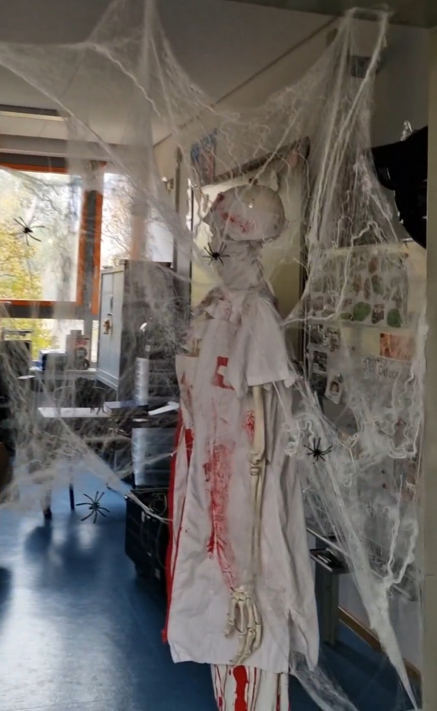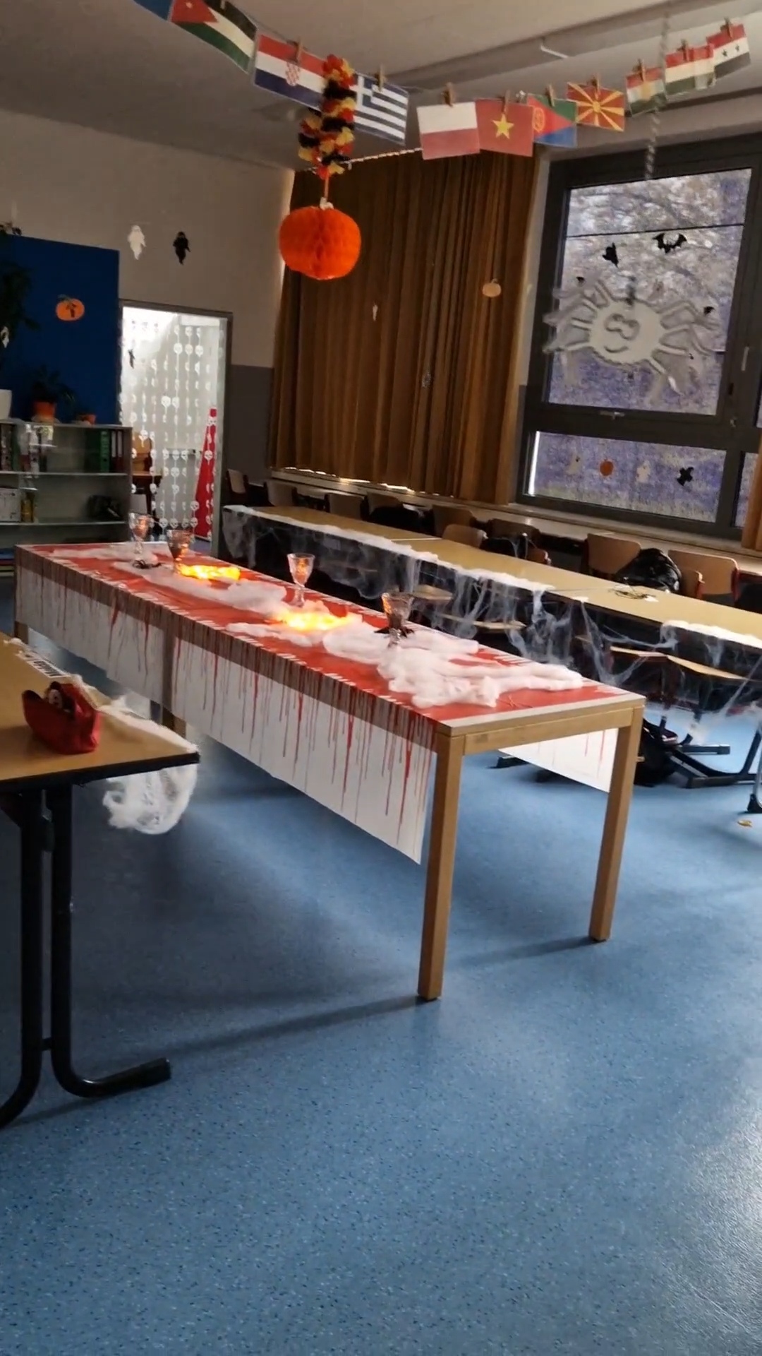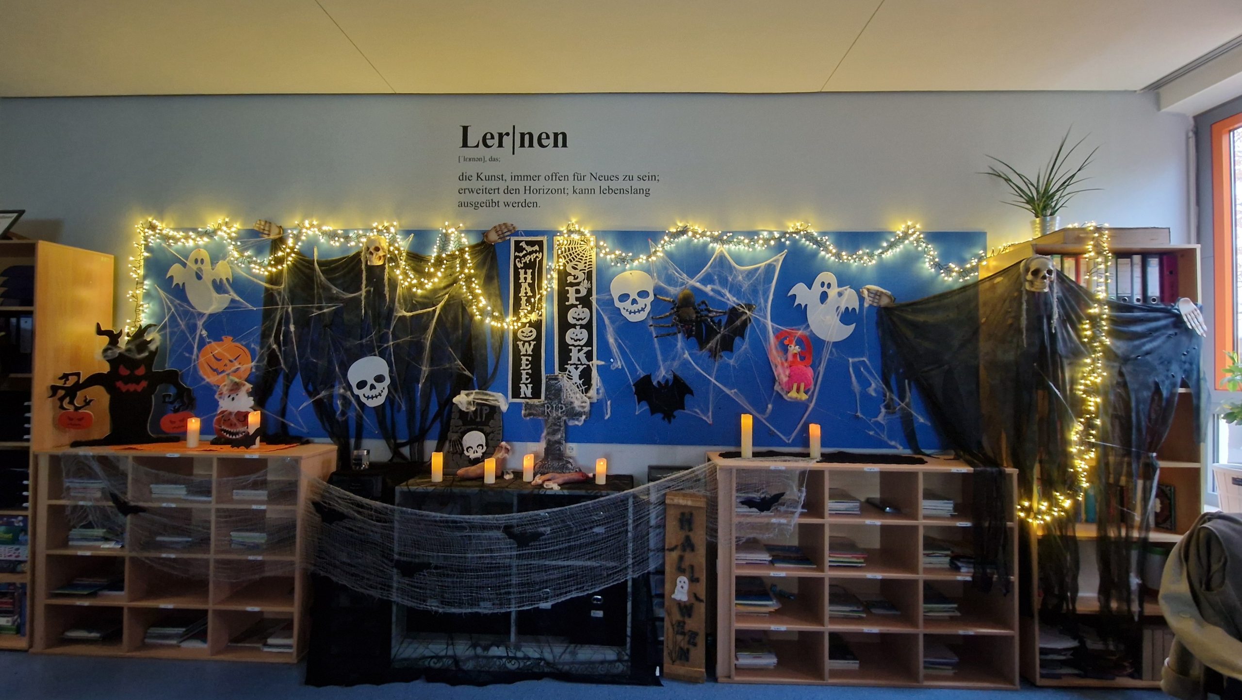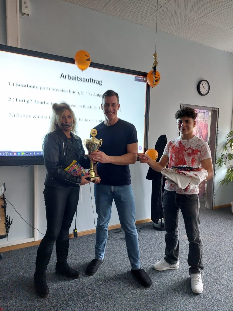Besonderes Lob gilt dem Engagement unserer Schülerinnen und Schüler beim jährlichen Klassenzimmer-Deko-Wettbewerb. Mit tatkräftiger Unterstützung ihrer jeweiligen Lehrkräfte haben sich die Klassen selbst übertroffen: Es wurde fleißig vorbereitet, gebastelt und dekoriert, um das gruseligste Ambiente zu schaffen.